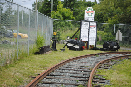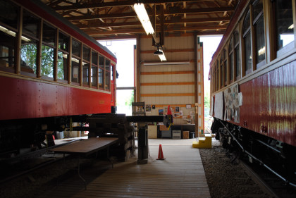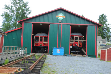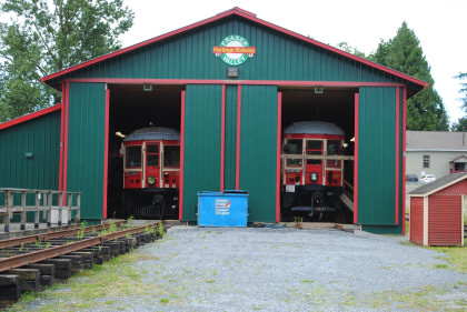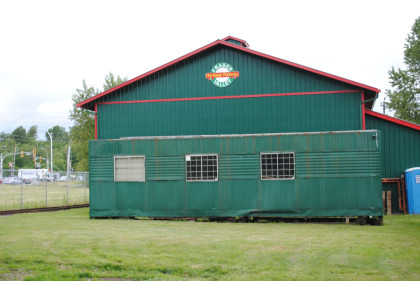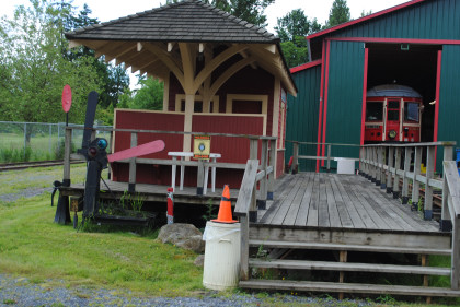 The car barn of the Fraser Valley Heritage Railway. This was built with the dream of having their British Columbia Electric Railway equipment housed inside. This dream has come true but the group would be moving to a new site next year in Cloverdale, just east of here.