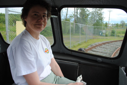 Elizabeth boarded for my fourth lap. After that we decarred and Bob boarded for a single trip around the loop, with Elizabeth and I photographing it.