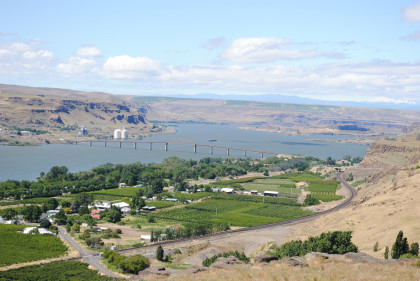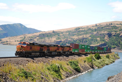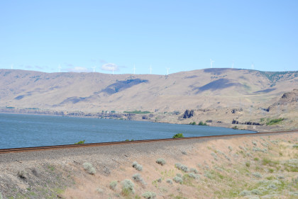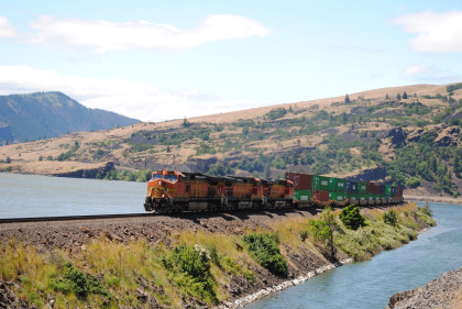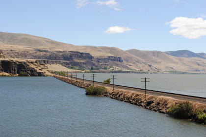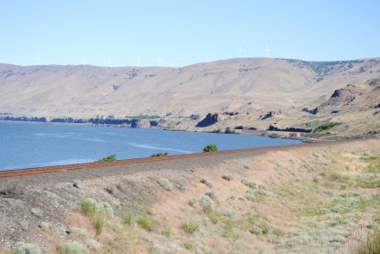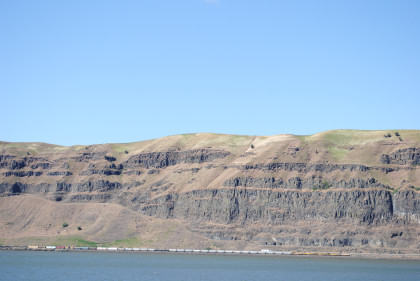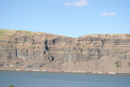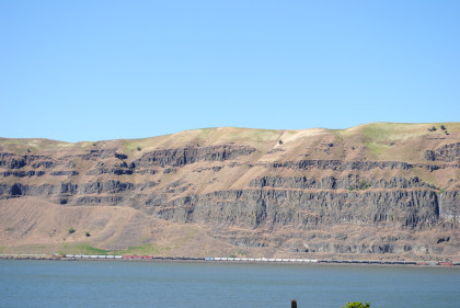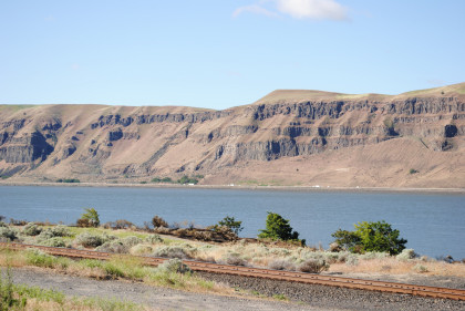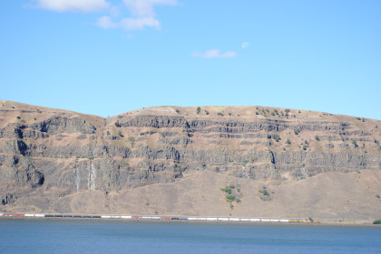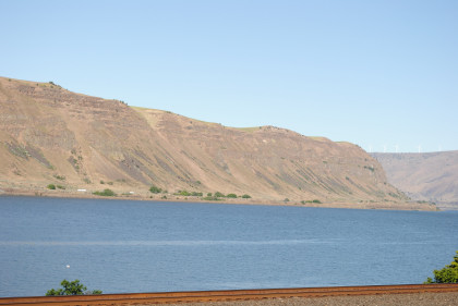 I arose early and put up the Yakima Trolley story on Trainorders.com then sent Steve Grande an e-mail about the other two stories before I checked out of the Pasco Motel 6. I went to Kennewick to McDonald's for hot cakes and sausage before going across the street to Safeway for some goodies then drove Interstate 82 south to Washington Highway 18 for my trip along the north bank of the Columbia River. I just missed an eastbound BNSF grain train so continued west and further along, saw another eastbound BNSF freight so pulled off.