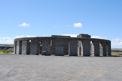 The American Stonehenge in Maryhill, Washington, An almost identical copy of the more famous English Stonehenge, it was built by Sam Hill, a road builder, as a memorial to those who died in World War I. Dedicated in 1918, the memorial was not completed until 1930. Hill passed away soon after he finally saw his masterpiece completed. He was buried at the base of the bluff; but, because he wished to be left alone, there is no easy path to his resting place.