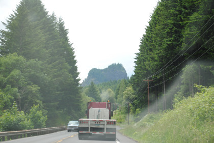 Mount Hood through the clouds. In Bingen, the highway was shut down due to a suspected package in town and the traffic was made to go on a poorly-run detour which wasted everyone's time and put all of us in danger had something gone off. I was glad to finally leave Bingen, Washington and drove west to Stevenson, stopping at Subway for a very early dinner. In fact I was still eating when I pulled into the Columbia River Discovery Museum where I wanted to see my old friend.