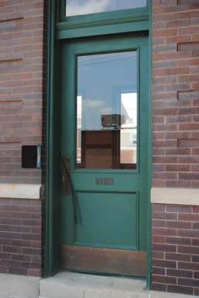 There were separate doors for the women's and men's waiting rooms. We proceeded west where outside of Bushnell, we found a BNSF coal train.