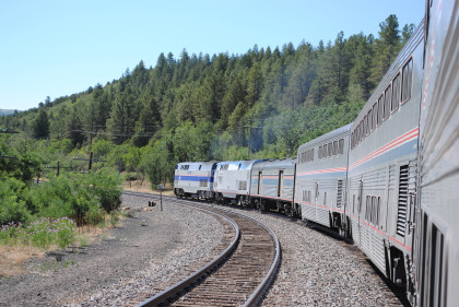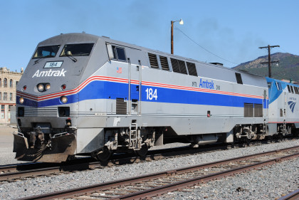 Amtrak P42 184 in Phase Four heritage paint scheme, which was in use from 1994 to 2000. We departed on time and I put together the September show for the Orange County Railway Historical Society as we made our way west to Trinidad and finished as the train was climbing the north slope of Raton Pass.