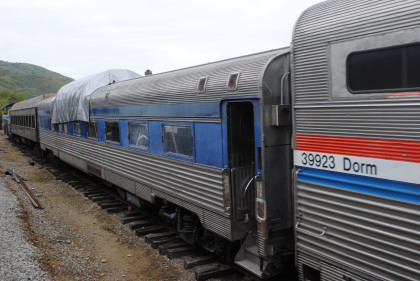 Amtrak coach/dormitory car 39923, nee Santa Fe 549 built by Budd Company in 1963.