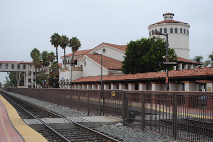 I went down through the tunnel and up to the west side where I waited for Metrolink 857 to arrive with the old Santa Fe Orange station in view.