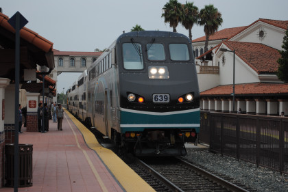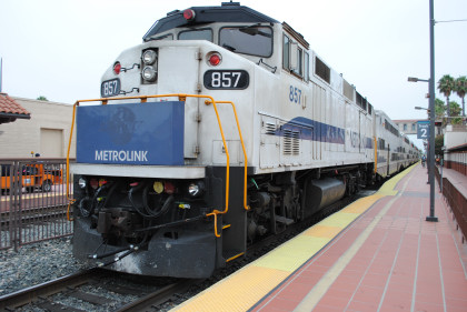 Metrolink 857 at Santa Ana on its way to Oceanside. I returned to my house to write this story as I listened to this morning's Let's Talk Trains.