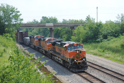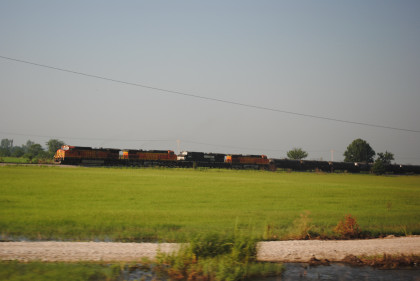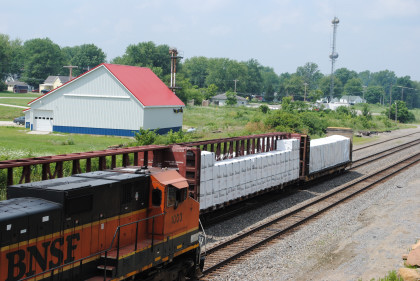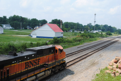 7/15/2011 I was up after Lawrence and once Joe made up my room because of a quick room turnover in La Plata, I enjoyed a cinnamon roll and orange juice then watched my DVD of "David Bowie Live" as the train made its way into the BNSF Argentine Yard to the northern side fuel pads to refuel. After that, it was across the state line into Missouri and our next stop of Kansas City, my last fresh air break of this trip. It was already 88 degrees in Kansas City at 7:30 AM and very muggy and I hoped La Plata would be a little cooler. I can always hope. The train departed Kansas City eight minutes late and we were on the way to my stop of La Plata; once we neared Sibley, my camera was ready.