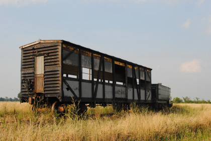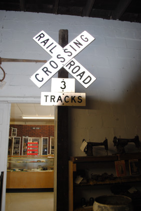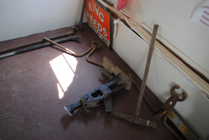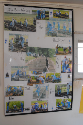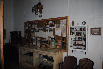 This former box car is the passenger car they use. While we waited for the steam to build up in the engine after we loaded wood aboard and he stoked the firebox, Bill and I visited their depot/museum trailer after I took a picture of the school.