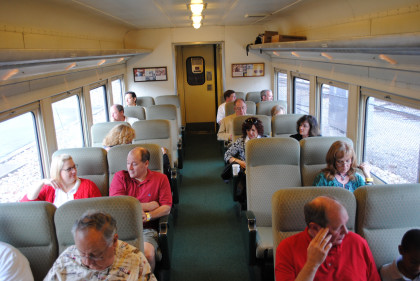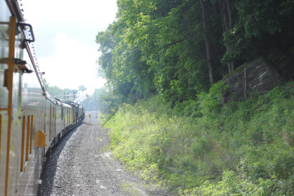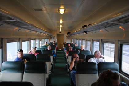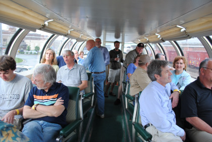 View of the train from car's dome. The train reversed out of the station at 8:11 AM to reach the mainline before heading east to start the trip to Jefferson City.