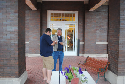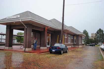 We all arose and I found out that the Chicago area was going to get two to three inches of rain an hour. As it was pouring here in Rock Island with lightning and thunder, I decided a new plan was in order for today. First we would have to get Bob Riskie to the Illinois Zephyr so Nathan and I left with Bob at 7:45 AM and once on the road, decided that Princeton would be the safe choice. Bob checked on his train, which was running on time, so we drove east down Interstate 80 arriving at Princeton in plenty of time to stop at McDonald's for breakfast. After that we drove to the Amtrak station.