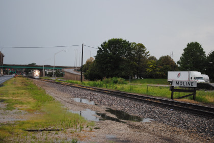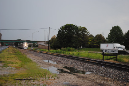 The Nebraska Zephyr trainset ran though Moline on its way to Bureau Junction. From here we drove to the former Iowa Chicago & Eastern yard west of Davenport.