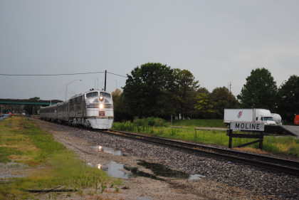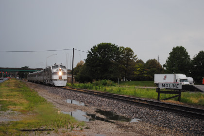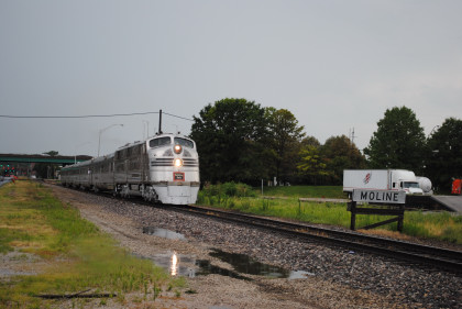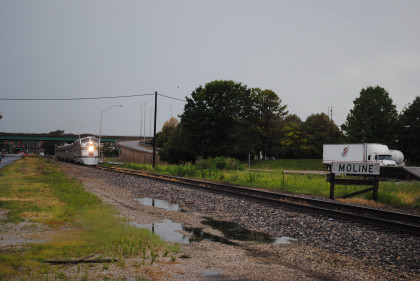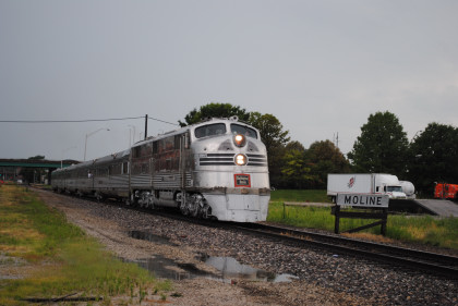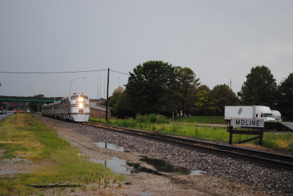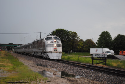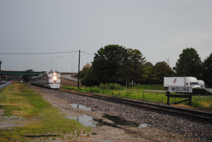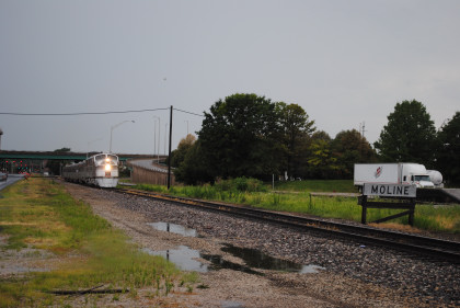 Nathan and I filled the rental van with petrol before returning to Motel 6 in Moline. Nathan wanted a nap so Gene, Bob, Elizabeth and I went to Moline to take pictures of the Nebraska Zephyr excursion to Bureau this morning.