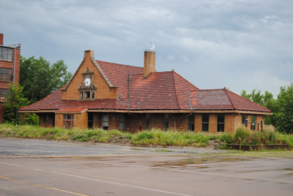 The Davenport, Rock Island and Northwestern station at 2021 River Drive. Built in 1900 by Olaf Cervin, it was in active use until 1934 when converted to offices for Frank Foundry Company. The City of Moline purchased the building in 1994 and designated it a local landmark, renovating it as a visitor's centre. That closed in May 2008 and as of July 2011, it was vacant. It was later demolished in July 2016 due to the construction of an entrance ramp to the new Interstate 74 bridge over the Mississippi River.