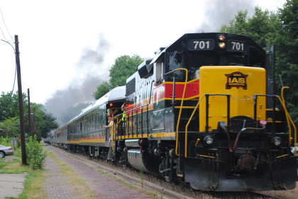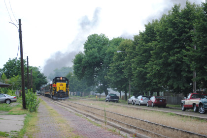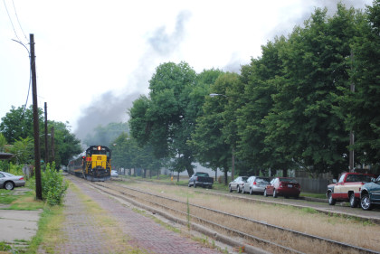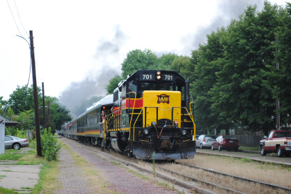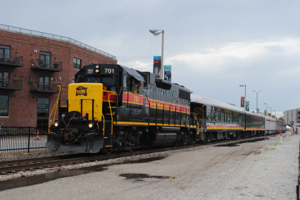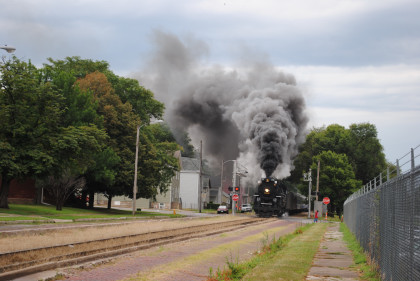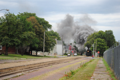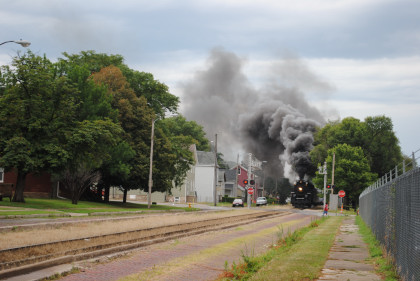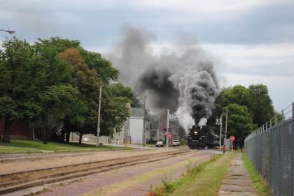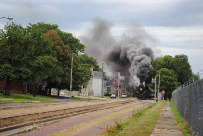 Nickel Plate Road 2-8-4 765 pulled the 11:00 AM train to Walcott this morning and put on a great show during the street running in Davenport. We then returned to Motel 6 to pick up Nathan before returned to Rock Island and parked in our usual parking structure.