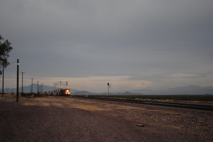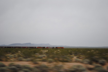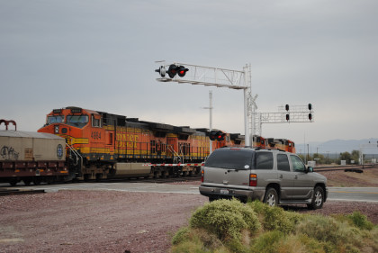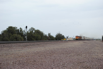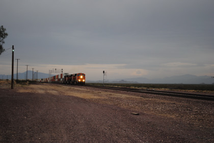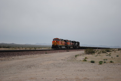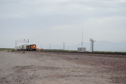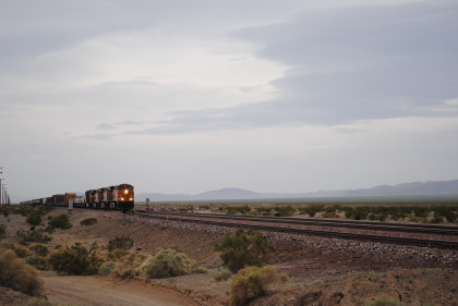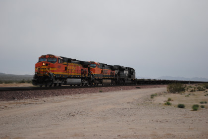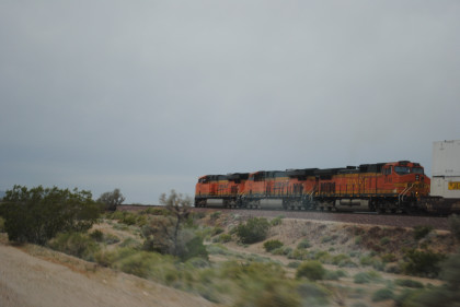 The two trains meeting at East Goffs. After BNSF 7583 East left, we drove straight to Amboy.