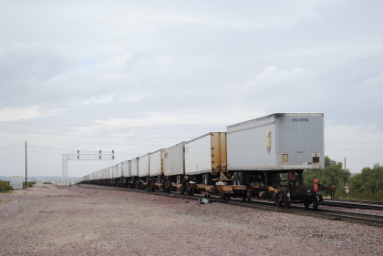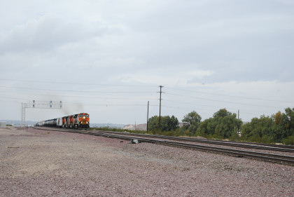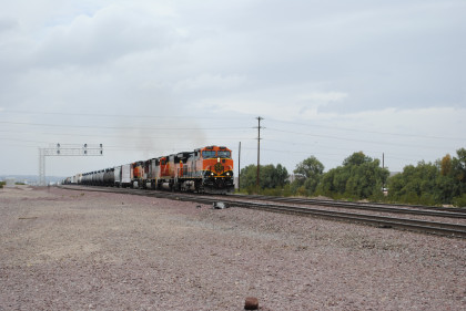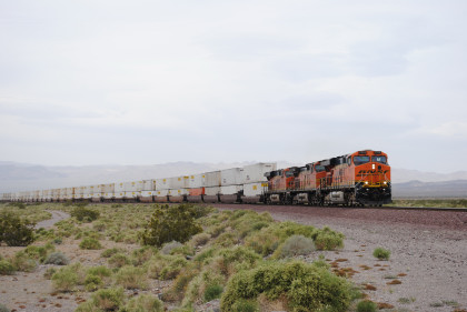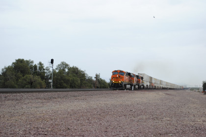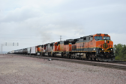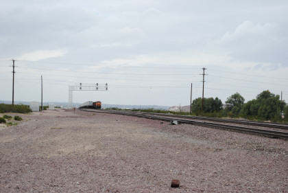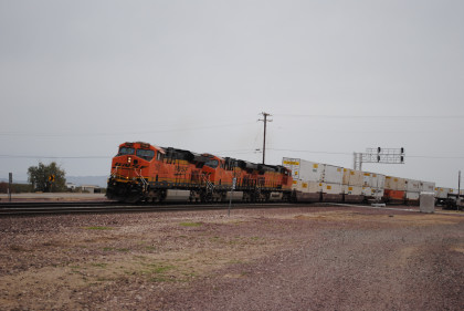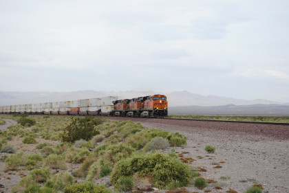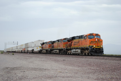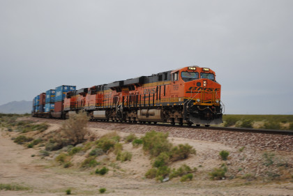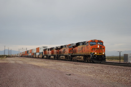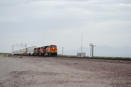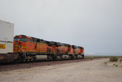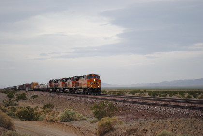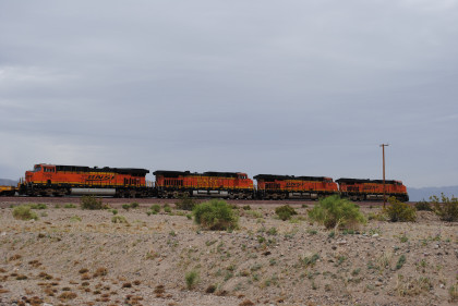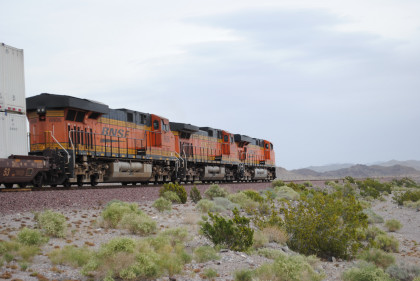 An unknown train following BNSF 7909 East between Goffs and Homer.