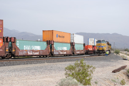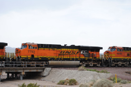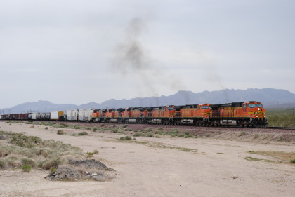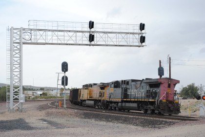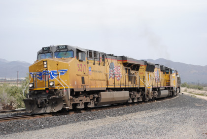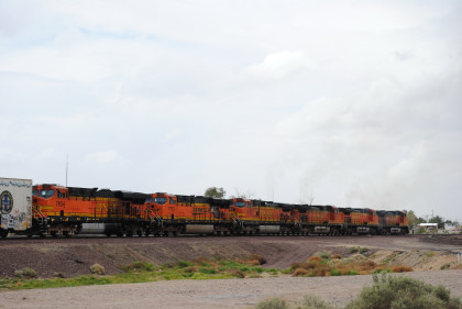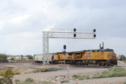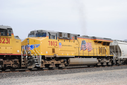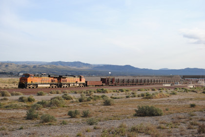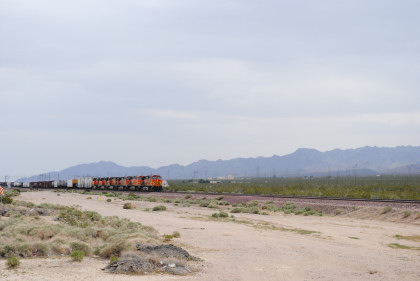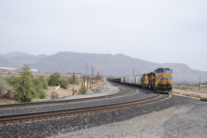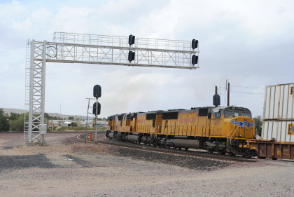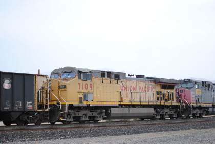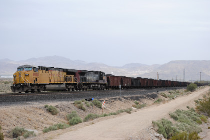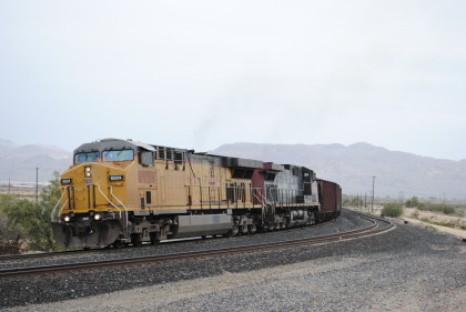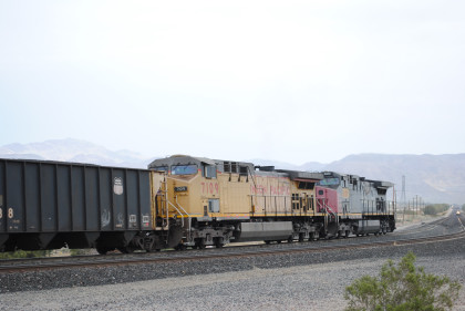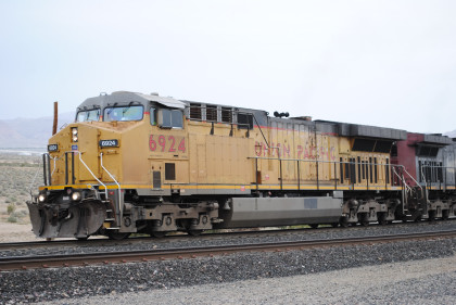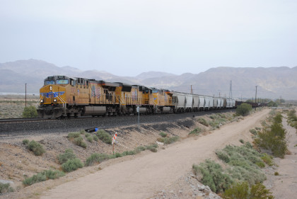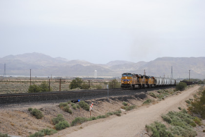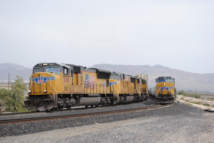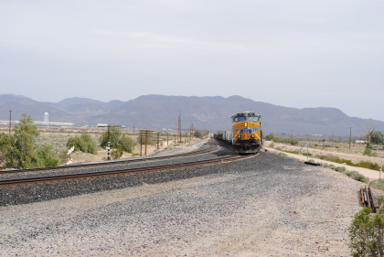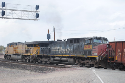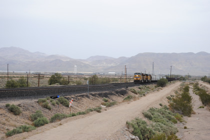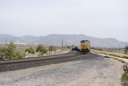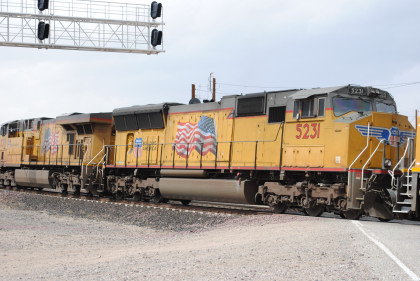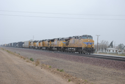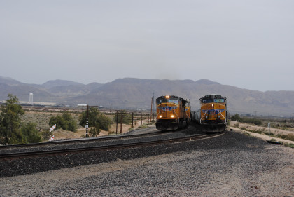 After that last eastbound BNSF freight, we drove over to the Union Pacific connection where we found a Union Pacific train with two more headlights behind.