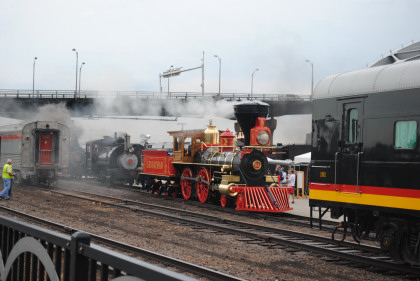 The tank engines. It was now time to drive to the west end of the grounds to meet Keith Schmidt, whom I would be following with Bob Riskie and Bob and Elizabeth Alkire on the chase of Nickel Plate Road 765 today.