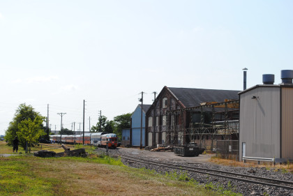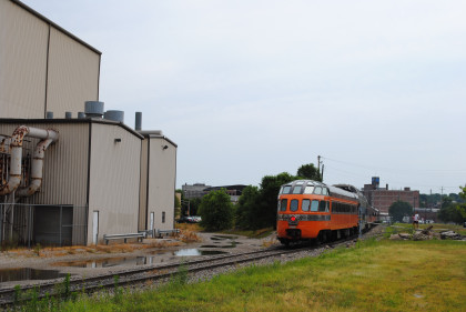 One of the QJs would be the power for the Walcott trains at Train Festival. We held a quick meeting to work out where we wanted to take pictures and decided that our first set would be by a factory in Moline so we made our way there.