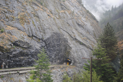 Houseboats on the West Branch of Lake Oroville. Next the train ran through Tunnels 5, 6 and 7 to Dark Canyon where the Western Pacific hi-rail trucks would check the tracks in the bad weather. Passing through Tunnel 8 took us into the Feather River Canyon.