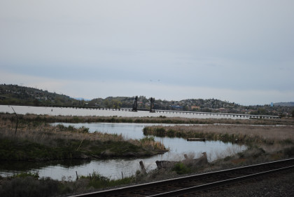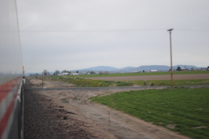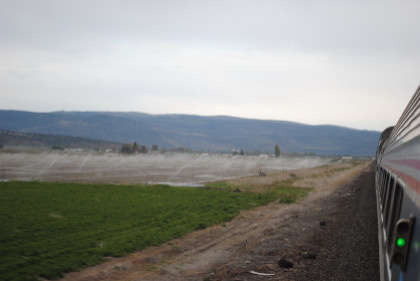 The view of Oregon on the east side. We ran across the farmland into the BNSF yard in South Klamath Falls and stopped briefly to drop off our BNSF pilot engineer.
