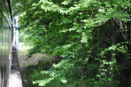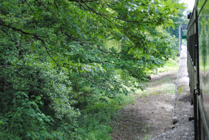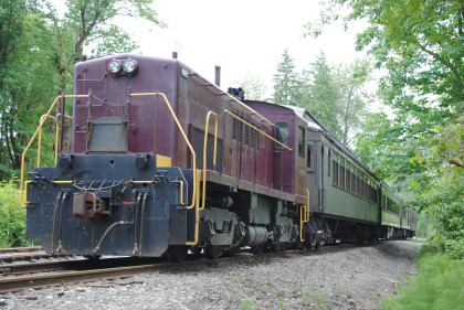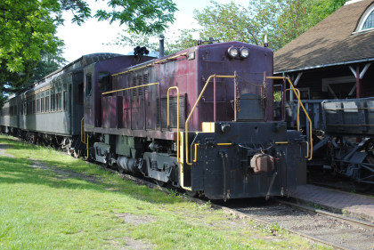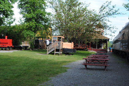 Museum grounds scene. The NRHS buses arrived at 9:20 AM and soon we were aboard the train and chose the nice comfy chairs in the open door combine for our journey.