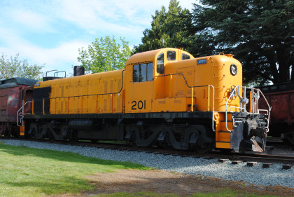 Kennecott Copper RSD-4 201 built by American Locomotive Company in 1951. Kennecott used it in the company's Nevada & Utah mining operations to pull trains of ore to the smelter. It was featured in a 2013 television commercial for the Washington State Lottery, where the winners get to live large. This one featured a railfan pulling out in this locomotive out to his mailbox, picking up his mail and then pulling the locomotive back into his garage.