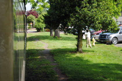 The rear of our excursion train today, whose consist was Engine 4024, Spokane, Portland and Seattle wooden coach 213, Spokane, Portland and Seattle steel coach 276, Spokane, Portland and Seattle combine 272 and Oregon-Washington & Navigation Company observation car 1590.