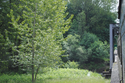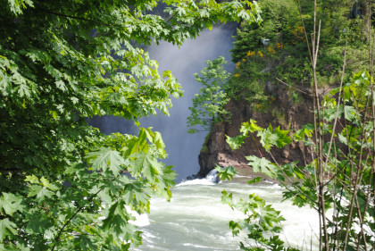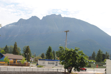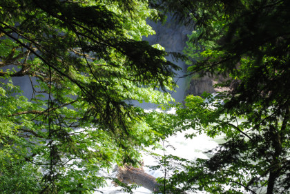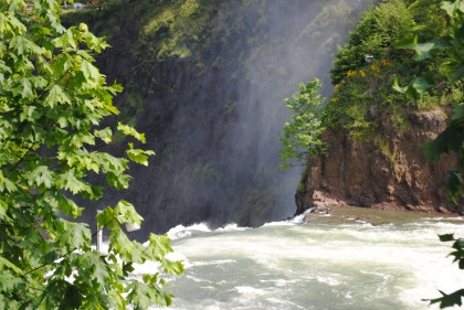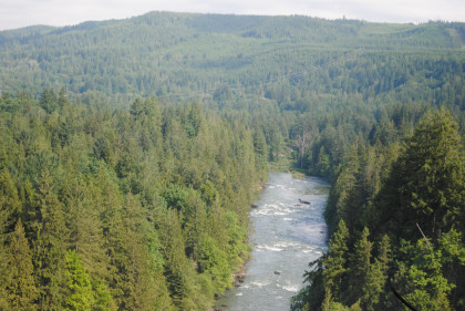 At the end of track, the view looking down at the Snoqualmie River in its gorge. After about ten minutes here, the train reversed directions and headed next to North Bend.