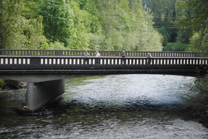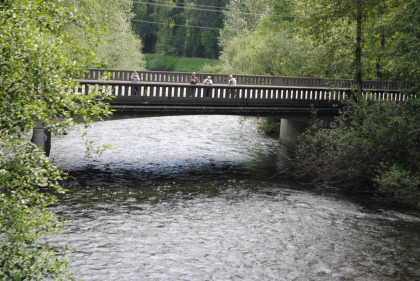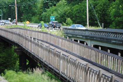 The train crossed the 798 foot trestle and truss bridge across the South Fork of the Snoqualmie River.