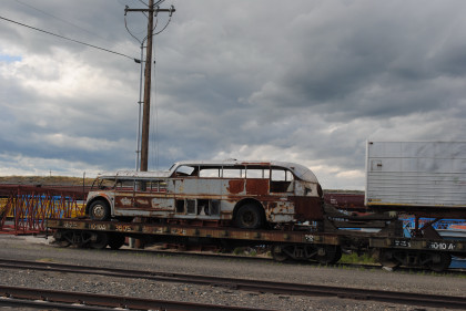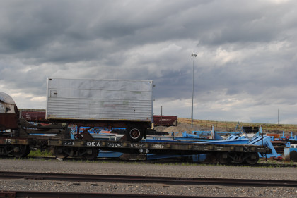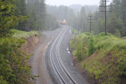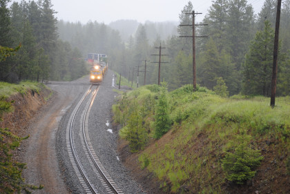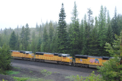 I called the Washington State Railroads Historical Society Museum from the Sumpter Valley Railway train and told them that Bob Riskie and I would still be coming. The fellow told me that the collection I wanted to see was not at the museum site but rather at the Port of Pasco and he gave me excellent directions. That meant I would not have to rush and we could railfan along the way. Bob followed me out on Oregon Highway 7 to Baker City and we took US 30 west to North Powder where we spotted a train.