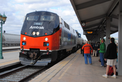 4/3/2011 I awoke at the Best Western and after preparing myself for the day, obtained ice for my cooler and went to have breakfast. Back in the room, I set up the story for today then checked out and walked back to the Amtrak station where I met many of my train-riding friends as we waited to board. The train was taken to be wyed after San Joaquin 701 left for Sacramento. A BNSF freight caused a delay getting the train back to the station but after a while. we heard a horn.