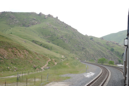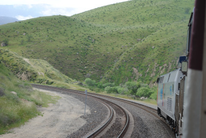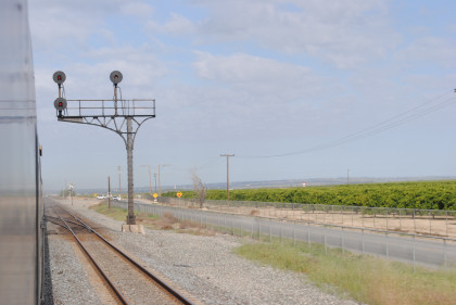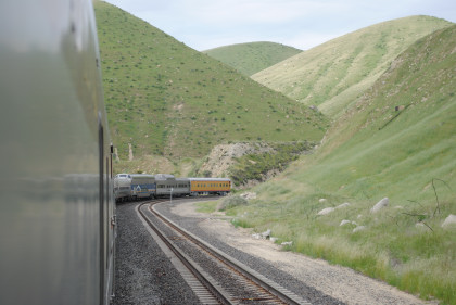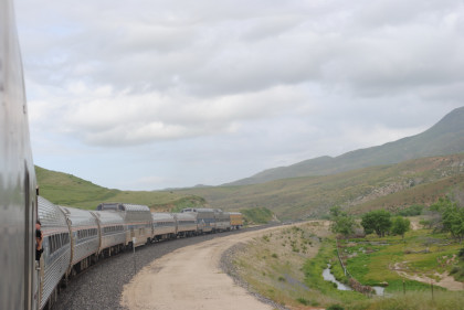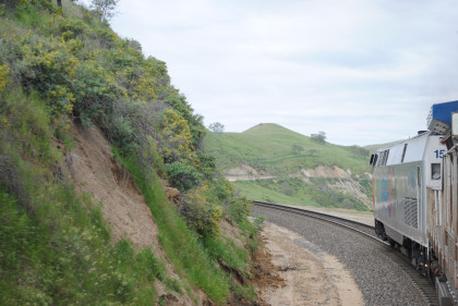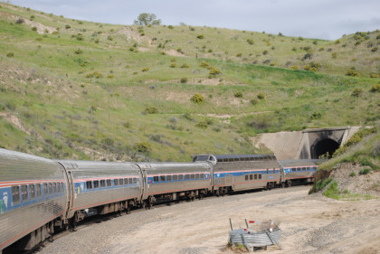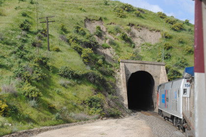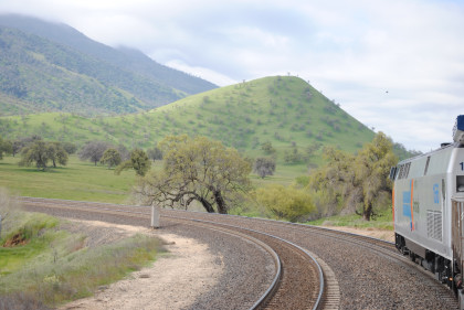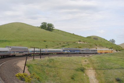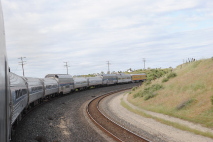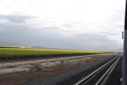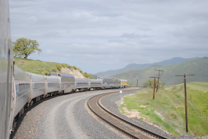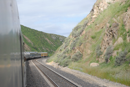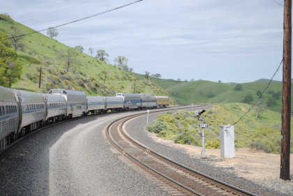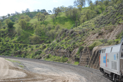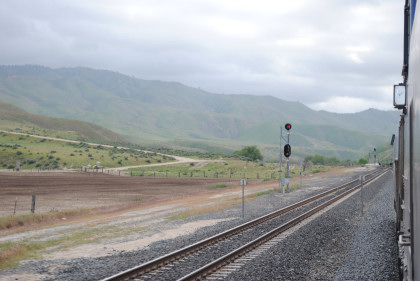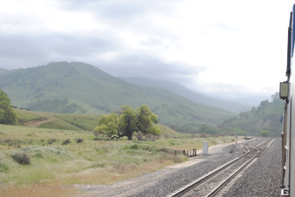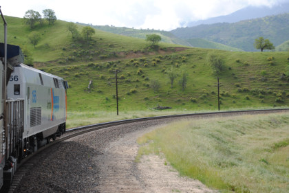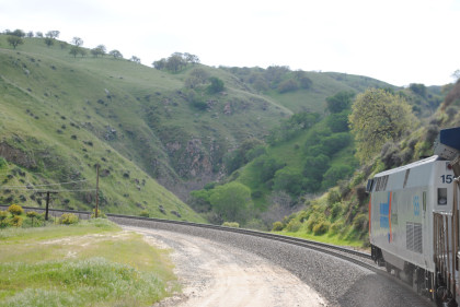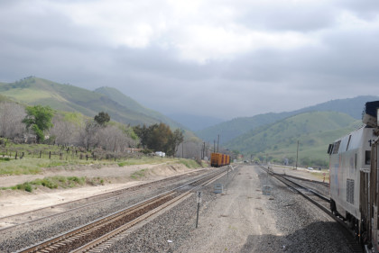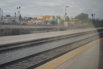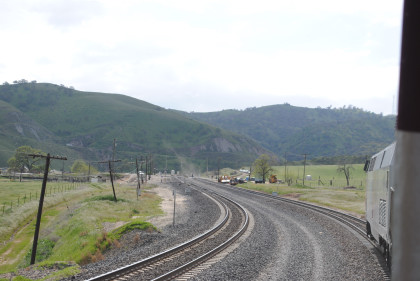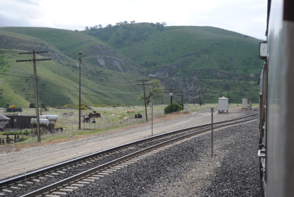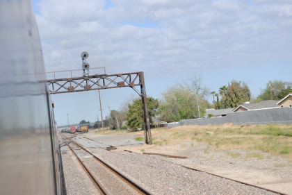 Our train returned to the Bakersfield station. After the Pacific Railroad Society staff loaded the boxed lunches, we were then boarded and departed at 9:05 AM, heading east.