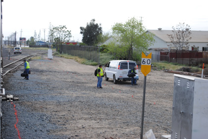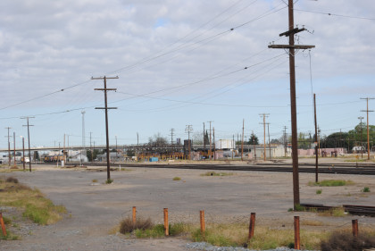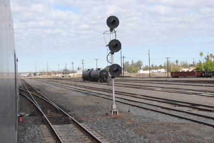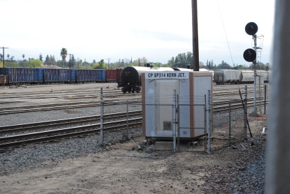 The signal bridge at the east end of the Bakersfield Union Pacific Yard.