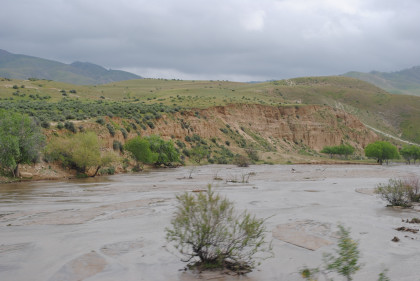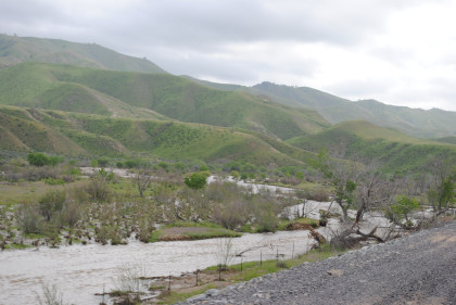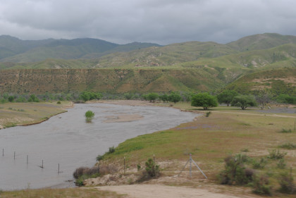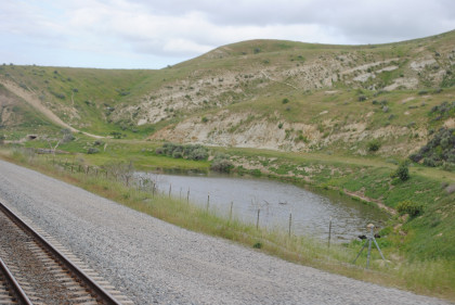 Caliente Creek was running pretty well this morning. Next the train ran through "The Narrows".