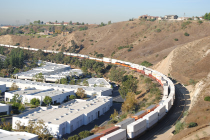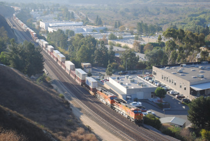 I decided to do some early morning railfanning this Saturday so I drove out to the Horseshoe Bend, parked my car then hiked up the bridal trail to the overlook above the Horseshoe Bend in Santa Ana Canyon.