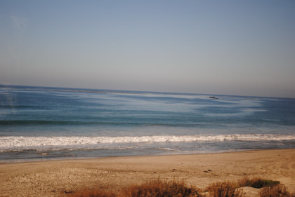 The scene later along the surf south of San Clemente. The train ran into the siding at West Fallbrook and luck was with me this morning with my camera and where the train stopped.