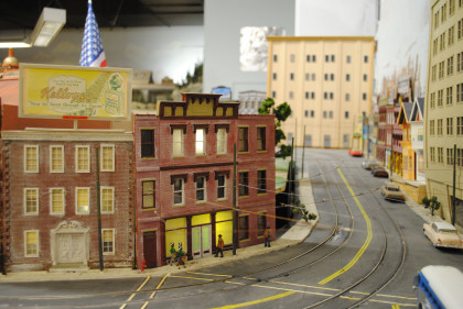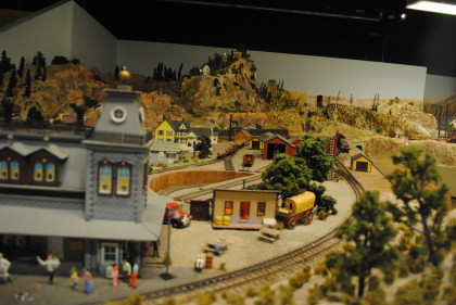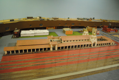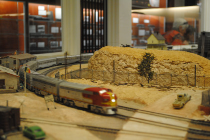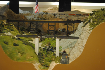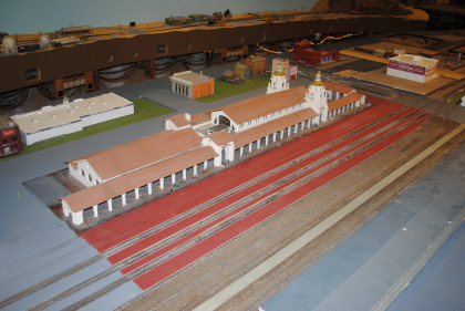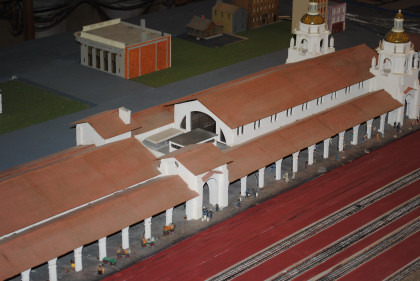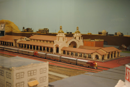 The O scale (1/48th actual size) layout model railroad is the Cabrillo & Southwestern. This 2,700 square foot layout is a free-lance representation of a route from San Diego to Sacramento built by the San Diego Model Railroad Club. The layout was redesigned in 1986 and is being built in place, section by section, giving visitors a first-hand view of model railroad construction. The layout features an electric trolley line which actually receives power from the overhead catenary system. There is also an operating brass sculptured water fountain in front of the main terminal. The San Diego Model Railroad Club (O and HO scales) meets Fridays at 7:30 pm in the Museum,
