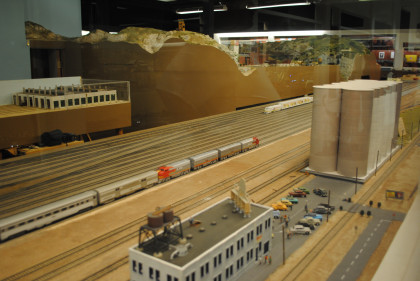 We sat here in the siding for over twenty minutes before Pacific Surfliner 769 ran by us on the mainline then arrived in San Diego thirty minutes late which did not matter because I was on the Connect Amtrak wi-fi the whole trip south and listened to music while I surfed the Internet. I went out to the street side of the San Diego station and waited for AC Adam who was delayed by a major accident on Interstate 8. He picked me up and we drove to Balboa Park and finally found a place to park. From the parking lot, we walked over to the building that is the home of the San Diego Model Railroad Museum, went downstairs and came to our destination.