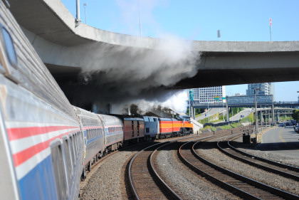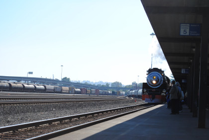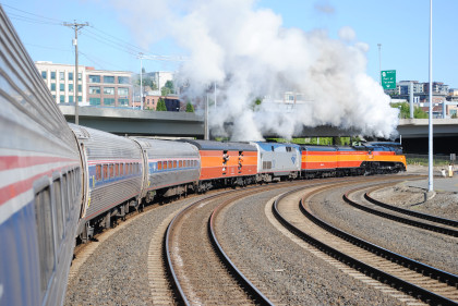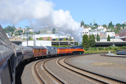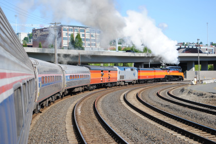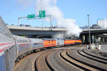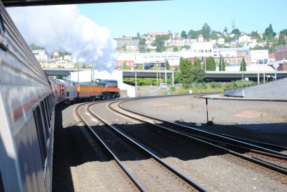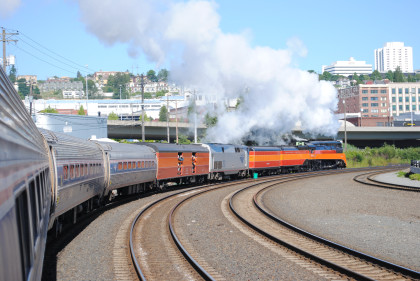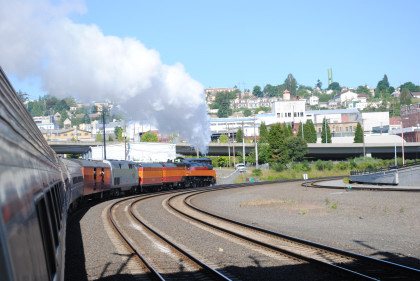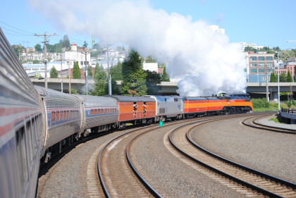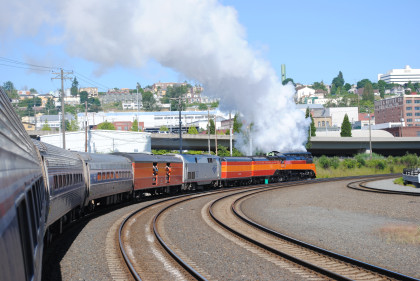 Southern Pacific 4-8-4 4449 put on a good show departing Tacoma this morning.