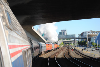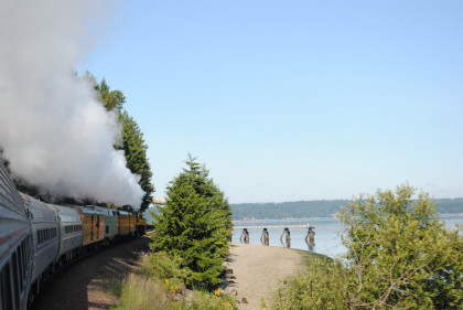 The steam train had nearly finished its run along Puget Sound and turned south this morning.