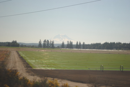 Mount Rainier. The train next rolled through the Amtrak station at Olympia/Lacey.