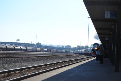 Southern Pacific 4-8-4 4449 and its train arrived at the station and I boarded Amfleet coach 82720.