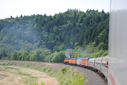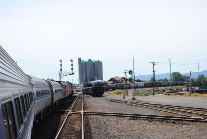 Mount St. Helens before running down to Centralia where we stopped because a radio from the baggage car had to be brought up to the steam engine as that one had been giving the crew problems since leaving Tacoma. We made a nine minute stop then headed south through Chehalis before starting the climb up Vader Hill and then down the other side running at track speed. After going through the tunnel, we ran through the Kelso/Longview Amtrak station and I relaxed the rest of the way to Vancouver, where some passengers detrained to return to Tacoma earlier than taking the Coast Starlight later today.