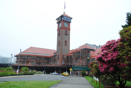 I was up early and after showering and checking the Internet, I went to the Days Inn lobby for breakfast and watched ESPN Sports Center before checking out. I walked over to the MAX station, bought my ticket then boarded a Blue Line train at the time of the Green Line train and took it to Hollywood where I switched to a Green Line train for Portland Union Station. I then walked the two blocks to one of my favorite stations in America.