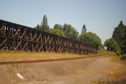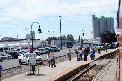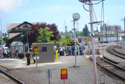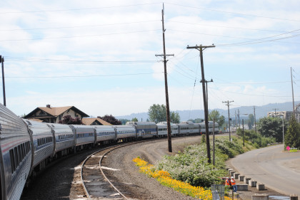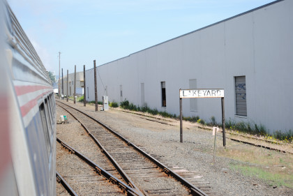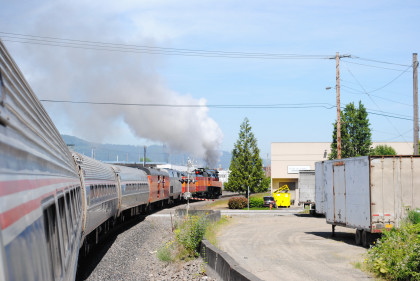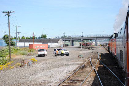 The interchange track with the former Columbia & Cowlitz Railroad. The southbound Coast Starlight passed us going south as we headed north.