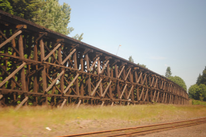 The view leaving Portland Union Station. I walked back from the baggage car back to the vestibule of coach 58107 for a few more open air pictures.