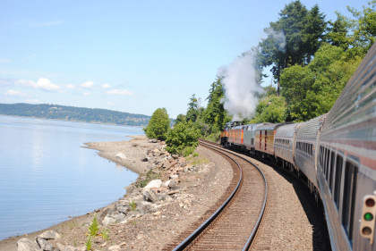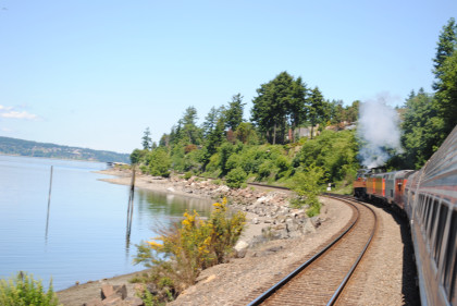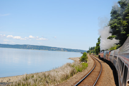Southern Pacific 4449 paralleling the Sound on a beautiful summer's day.