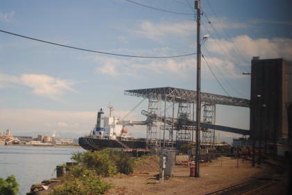 Local color on the way to Vader. The train ran by the ash piles that were dredged out of the Toutle River after Mount St. Helens blew its top in 1984 then climbed Vader Hill.