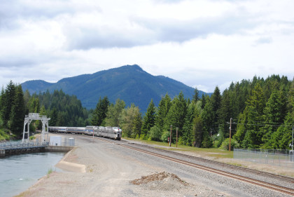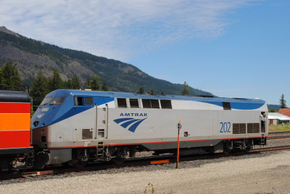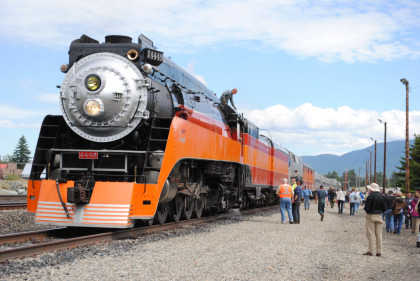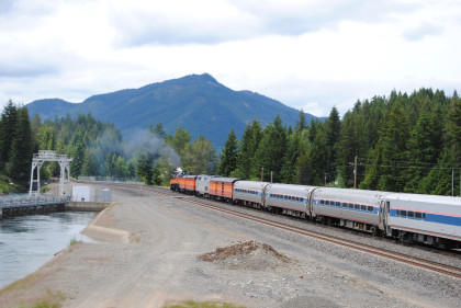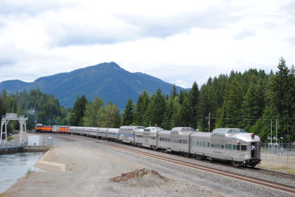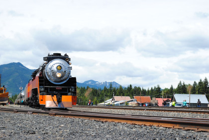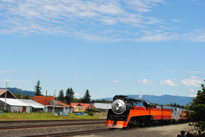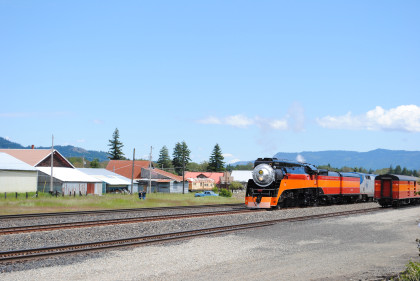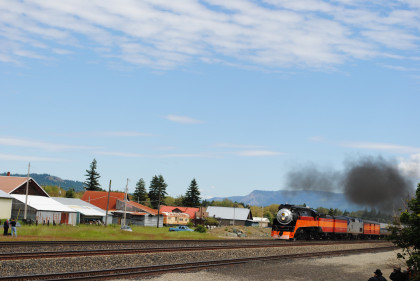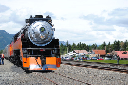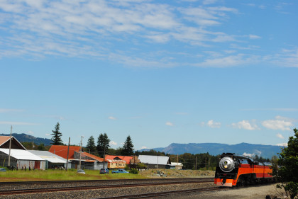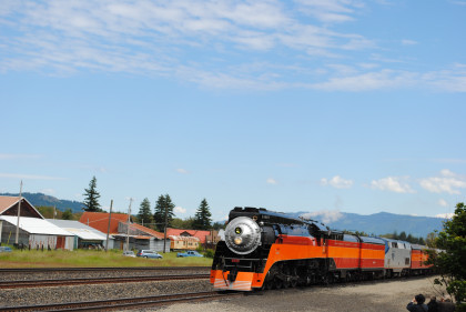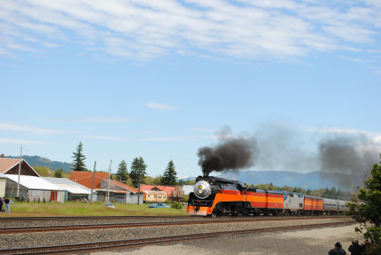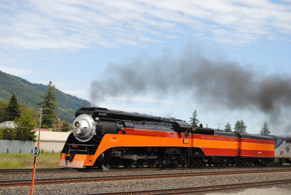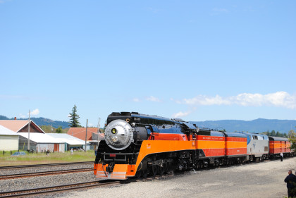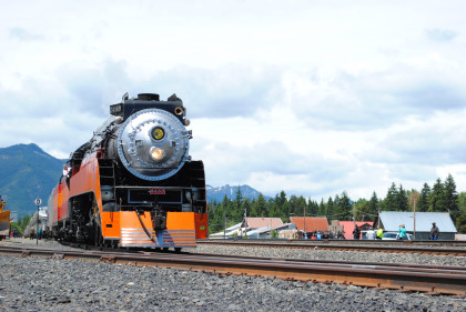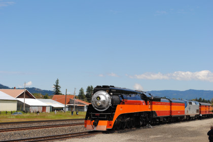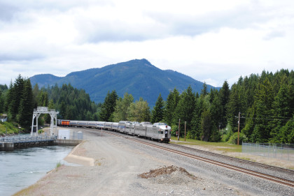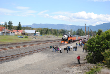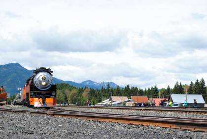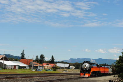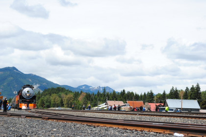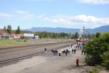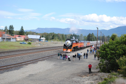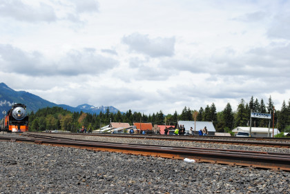 Southern Pacific 4449 was ready for boarding for the trip back to Tacoma. I showed Doyle my NS the Menace shirt and he had a good laugh about it. After the crew serviced the steam engine, we departed Easton at 3:18 PM bound for Tacoma as I relaxed, visited with friends and rode in the open door baggage car before showing Bob Riskie my "40 years of Amtrak" program then talked with Bart and Sarah Jennings about next year's convention. All too soon we joined the Seattle-Tacoma mainline just as the southbound Amtrak Cascades flew by. I said my goodbyes to Bart and Sarah as we neared Tacoma and quickly returned to my seat then Elizabeth and I were second in line to detrain. It had been a fantastic National Railway Historical Society convention steam trip over Stampede Pass.